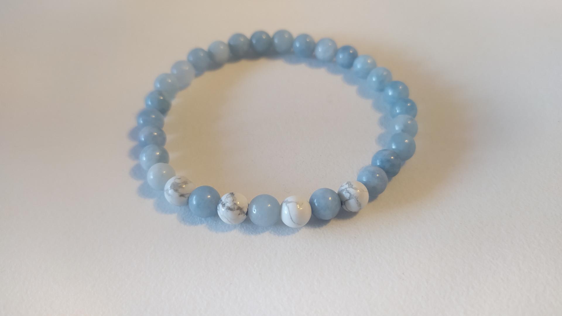 Bracelet élastiqué création artisanale aigue marine howlite Daphné créations bracelet agates bleues bleu clair mixte perles naturelles vertu bien-être