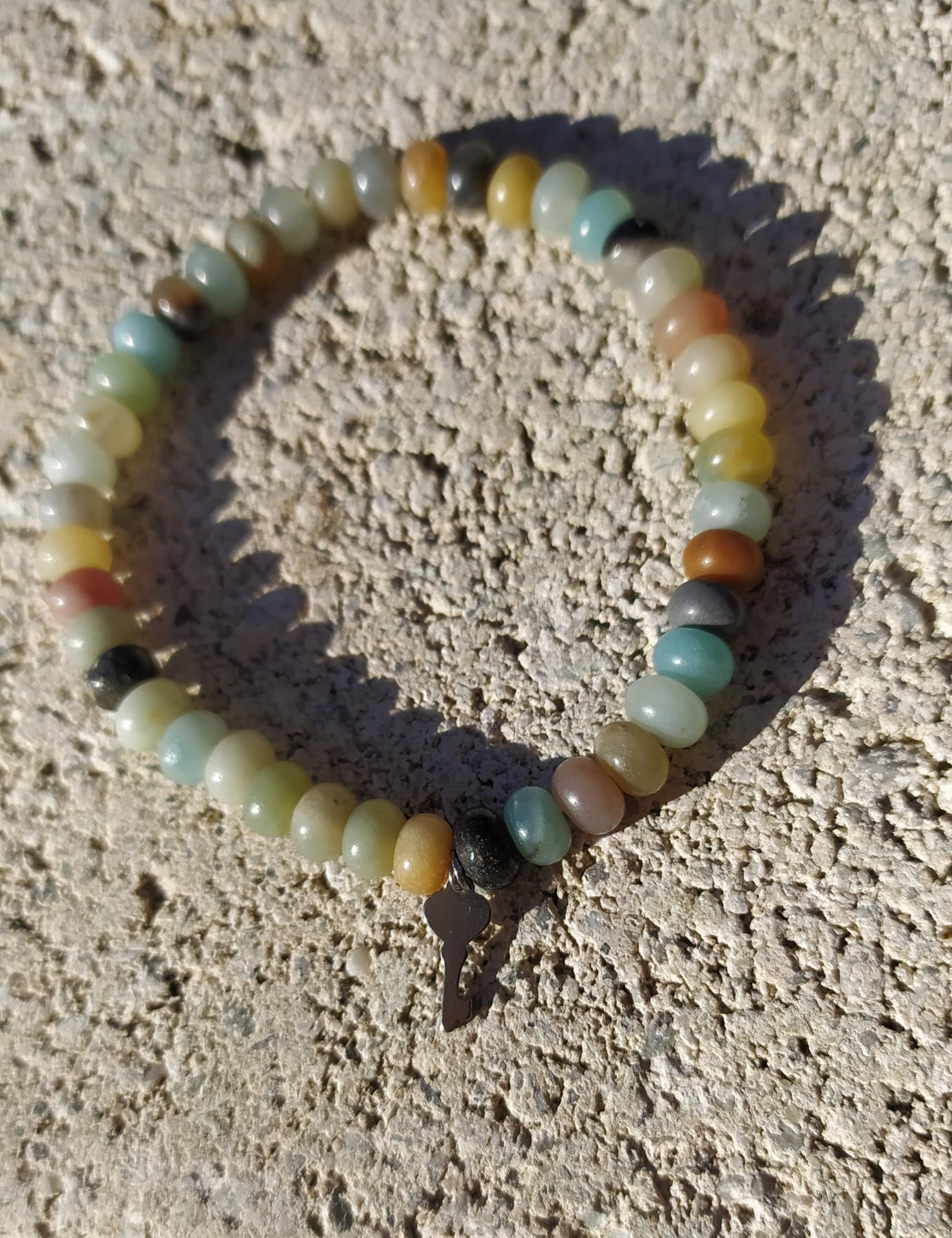 Bracelet en perles naturelles, amazonite et clé du bonheur