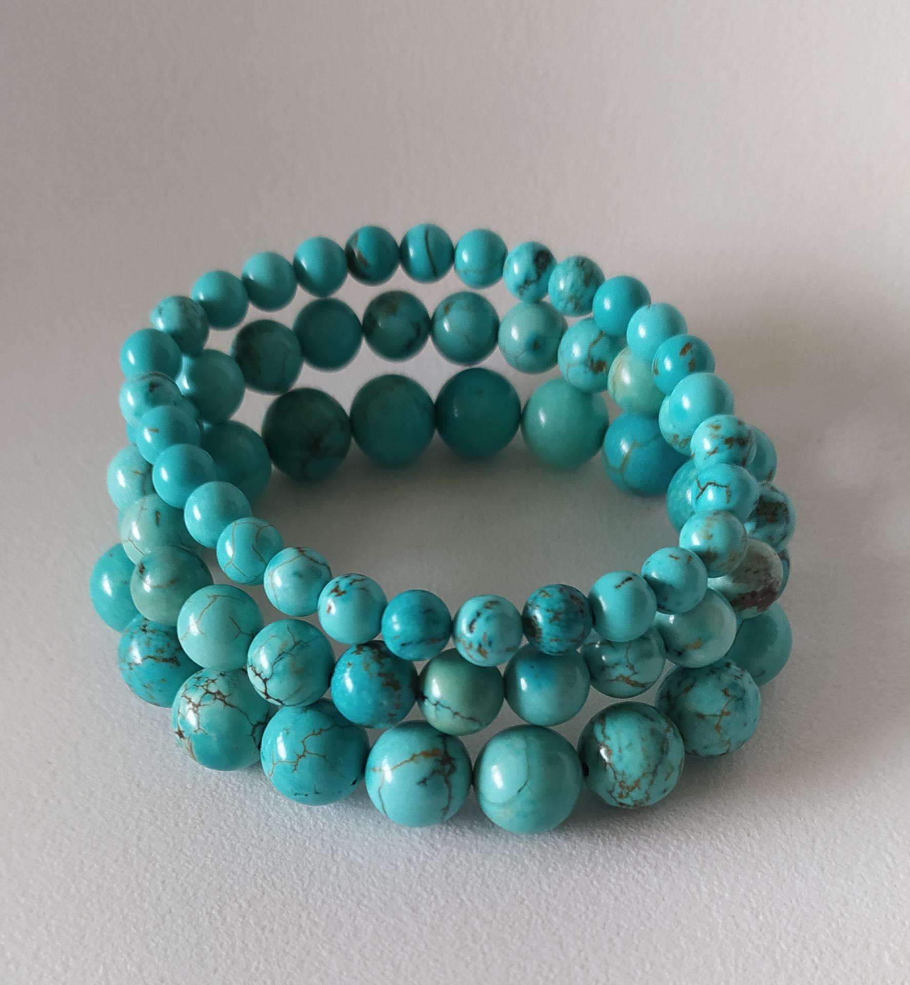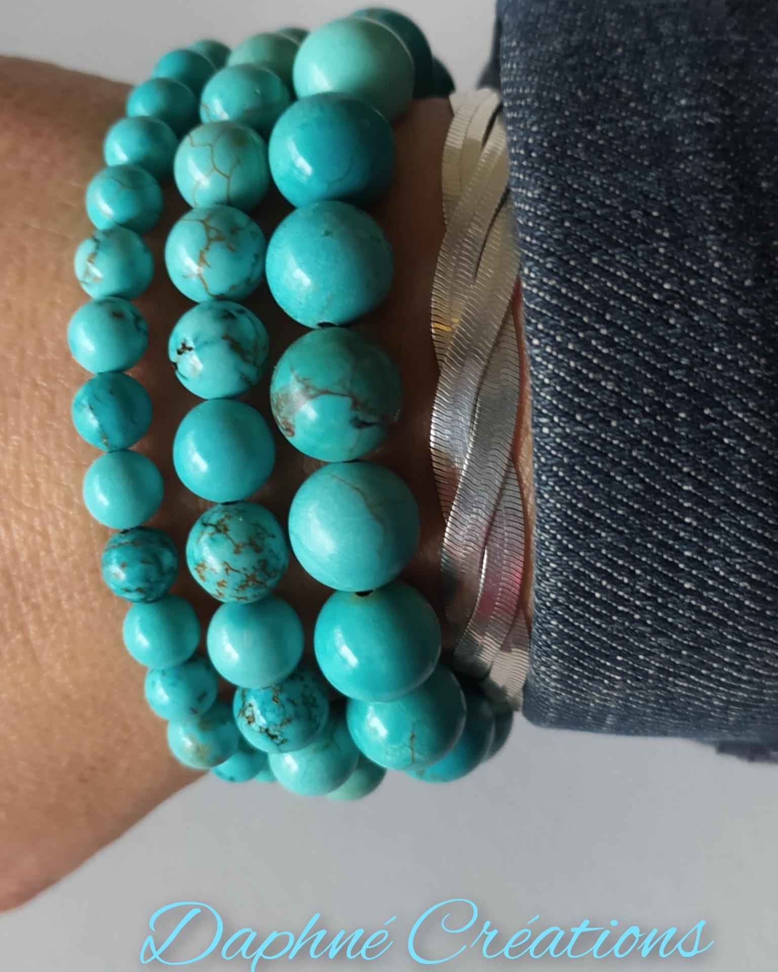 Bracelet en pierres naturelles, turquoise, élastiqué. Daphné créations.