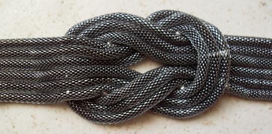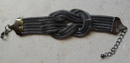 Bracelet en métal 6 rangs et noeud central. Fermoir et chaînette.