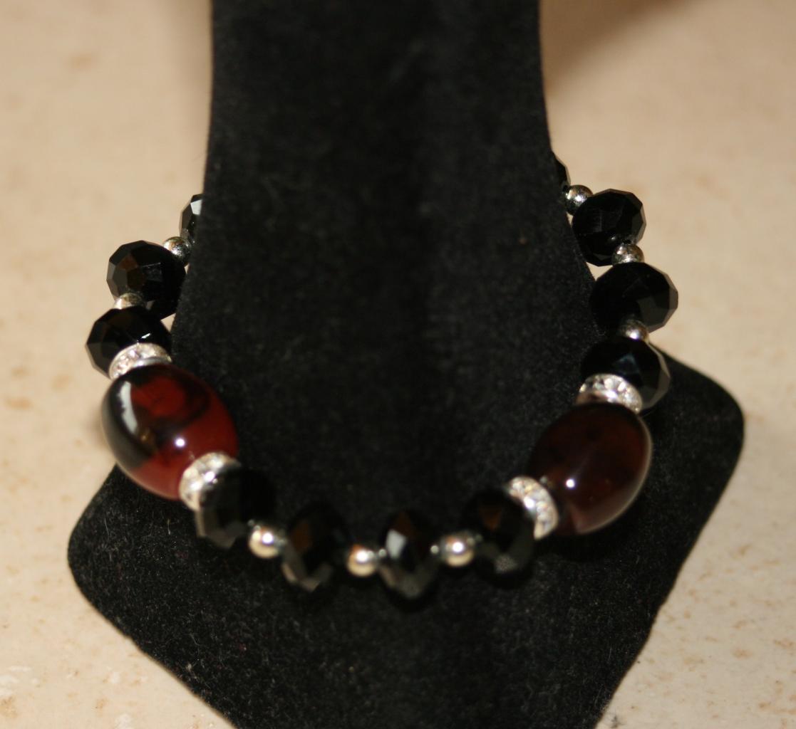 bracelet noir marron perles cristal de swarovski strass porcelaine