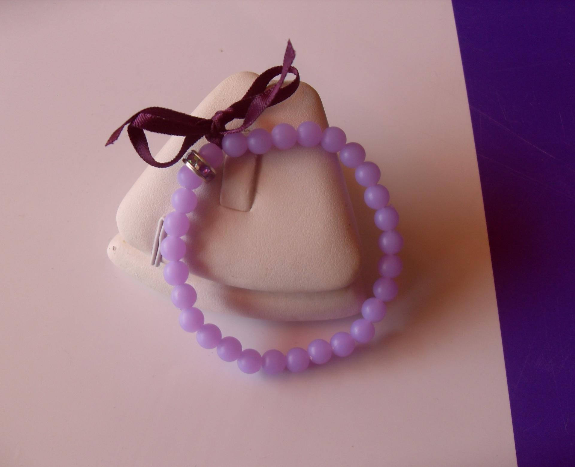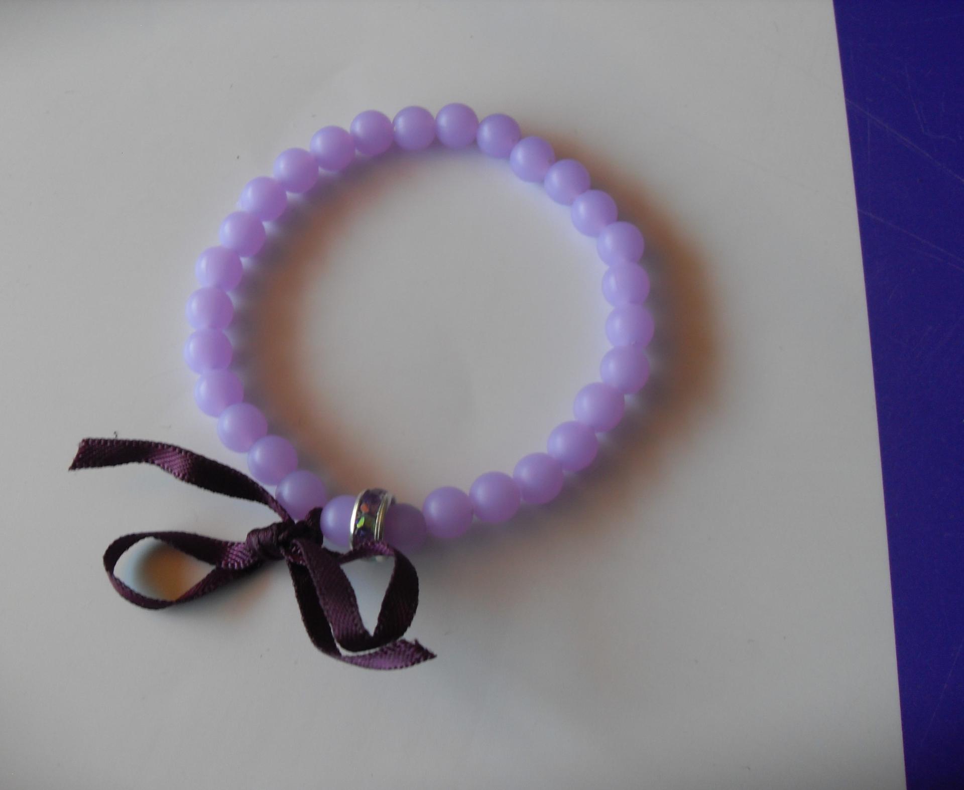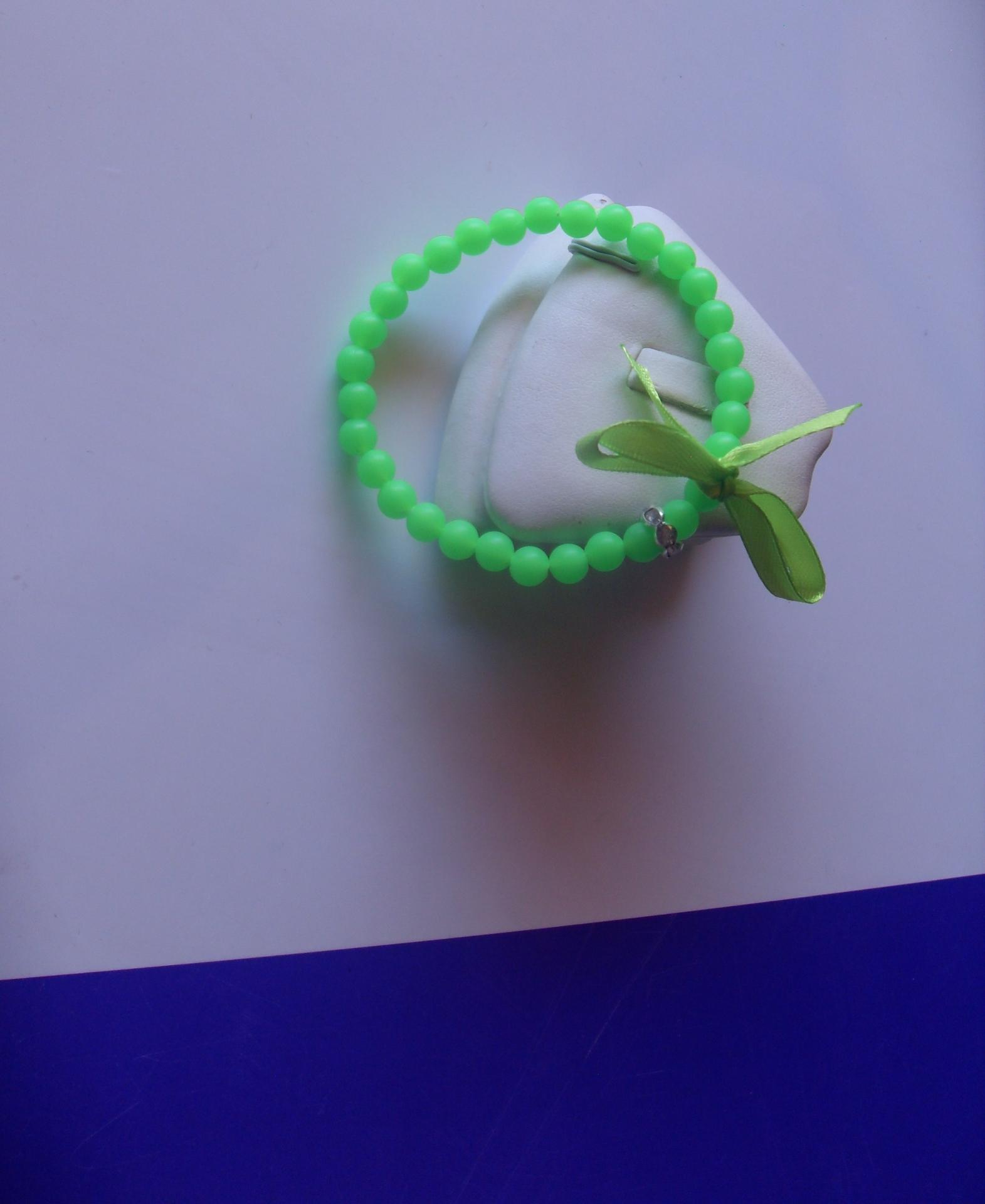 Bracelet élastiqué en perles fluo effet glacé (6mm), strass et ruban.