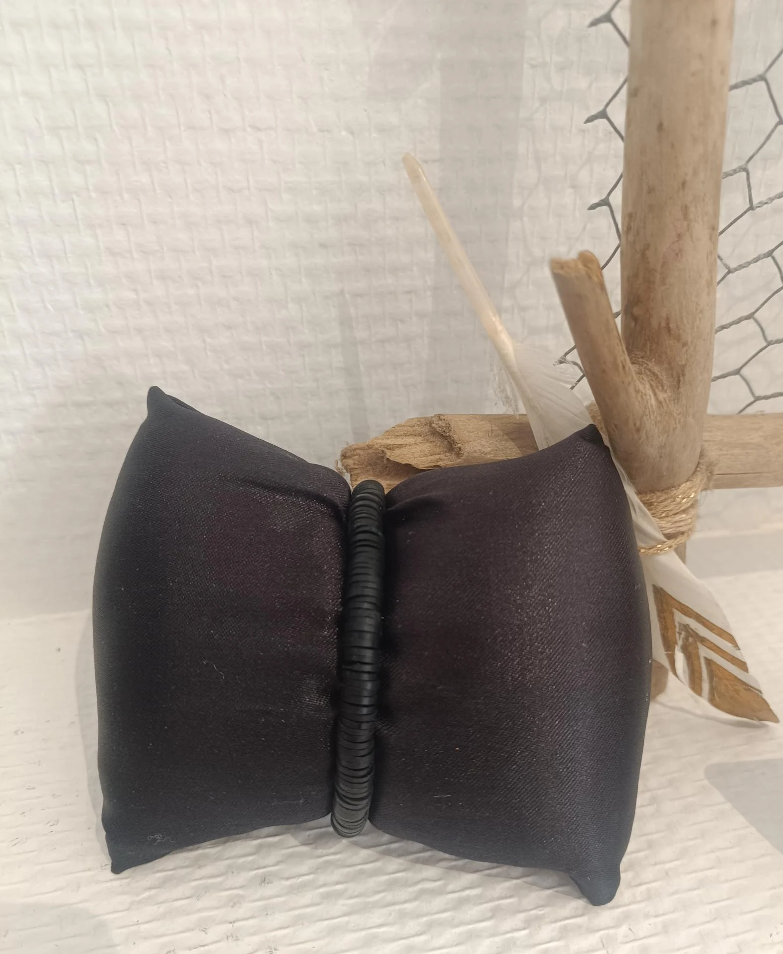 Bracelet perles rondelles heishi noir et blanc "COEUR"