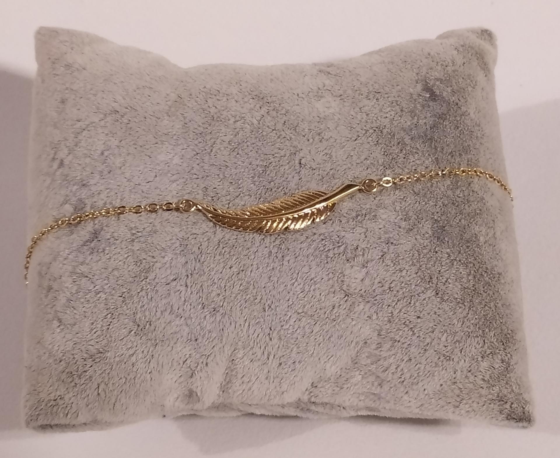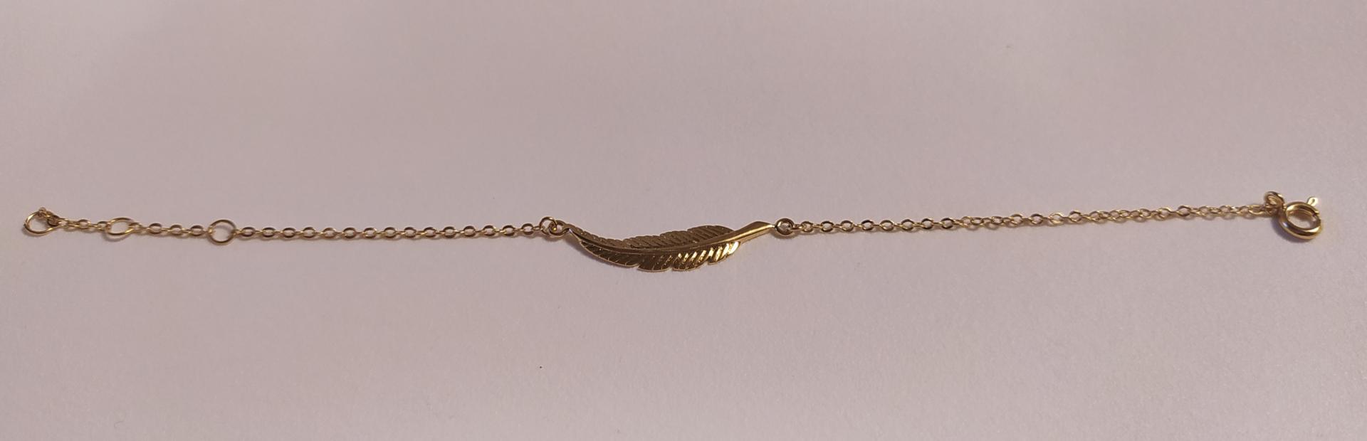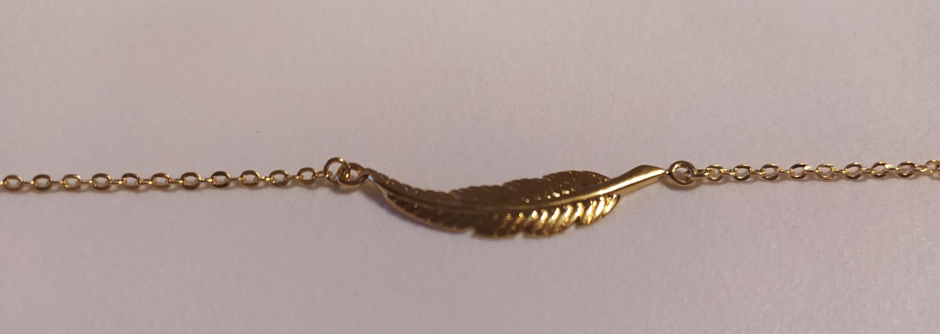 Bracelet chaîne plaqué or et plume, réglable, fermoir mousqueton.