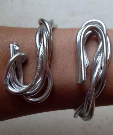 Bracelet rigide 4 rangs métal argenté, création unique