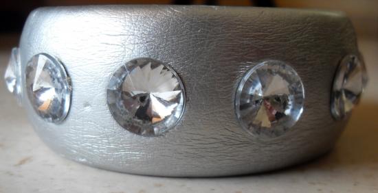 Bracelet rigide simili cuir argenté et strass.