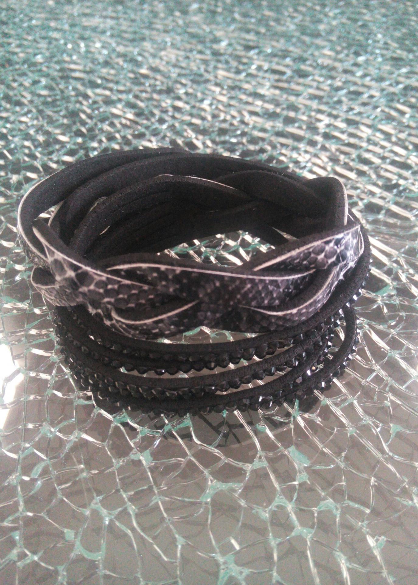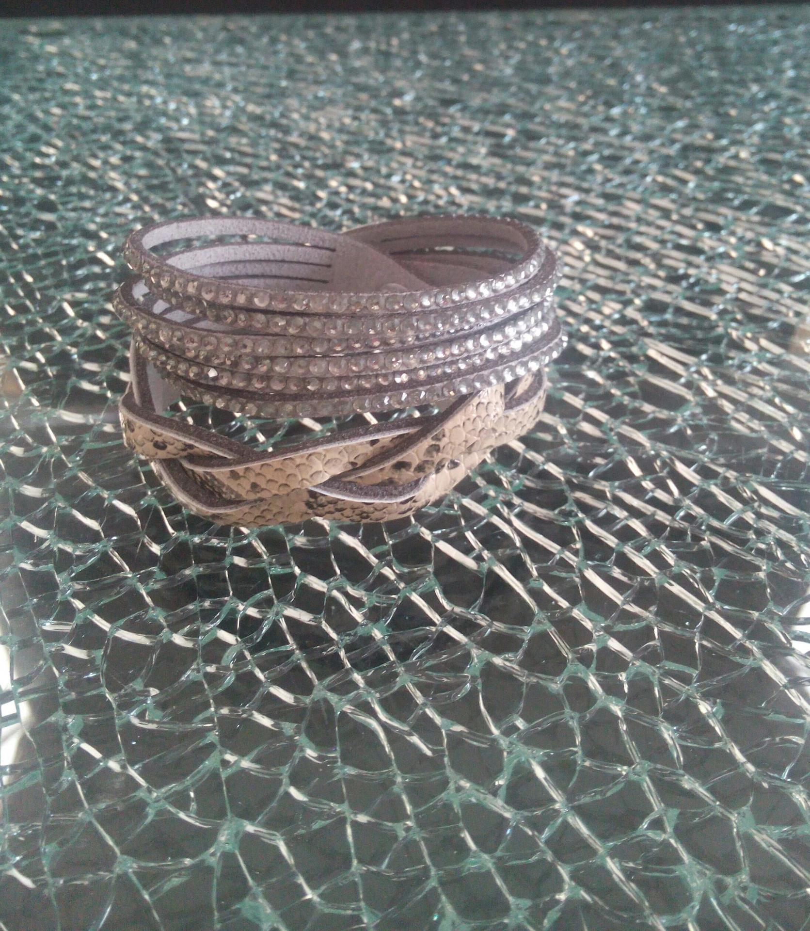 Bracelet strass et peau de serpent.