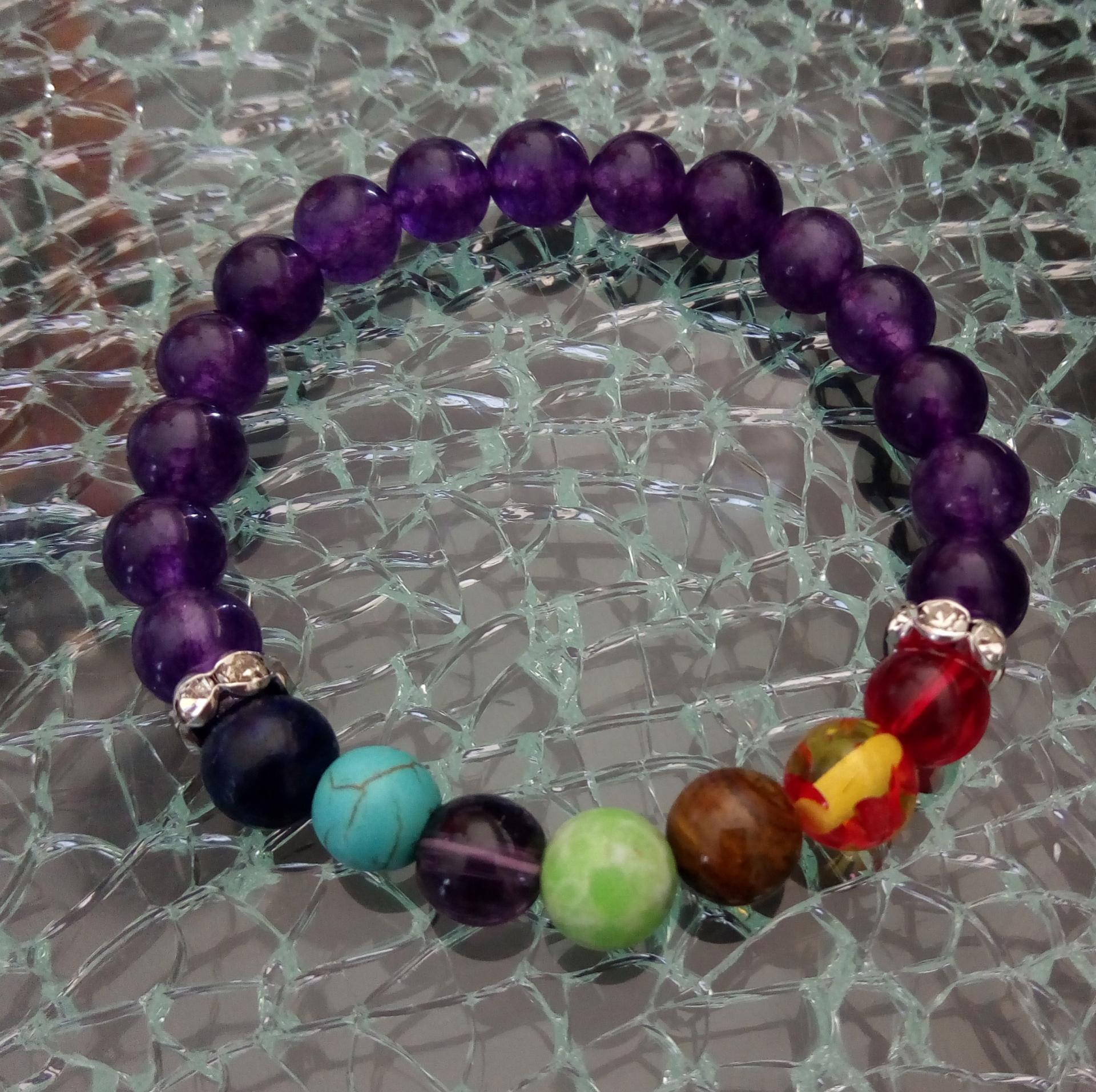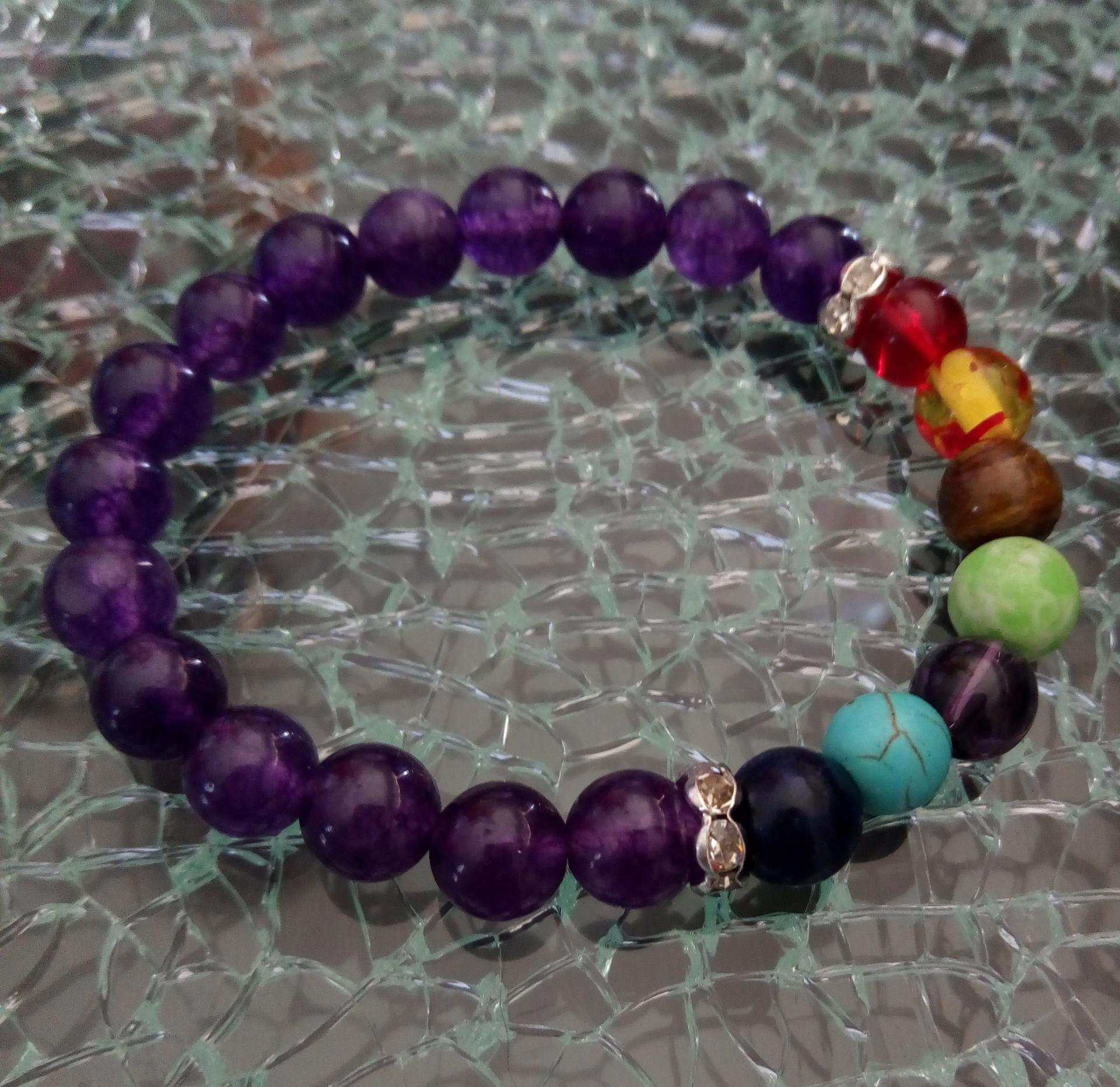Bracelet violet, strass et perles 7 chakras