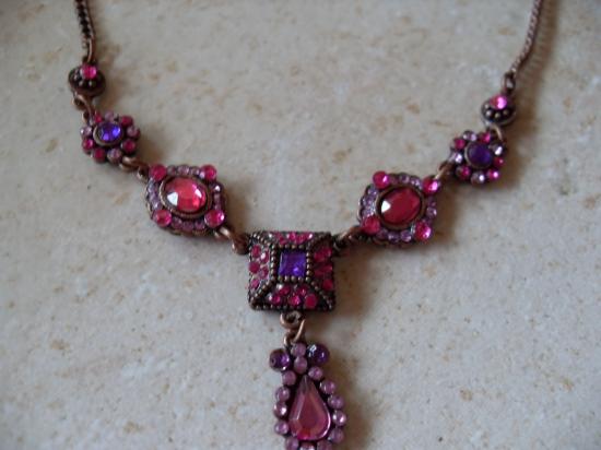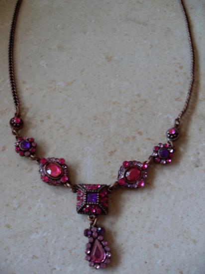 Collier bronze strass rose et violet.