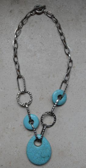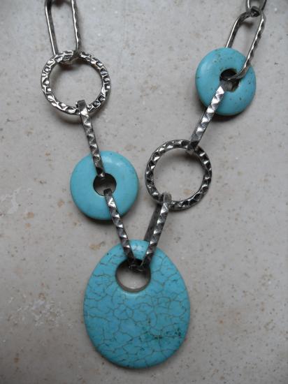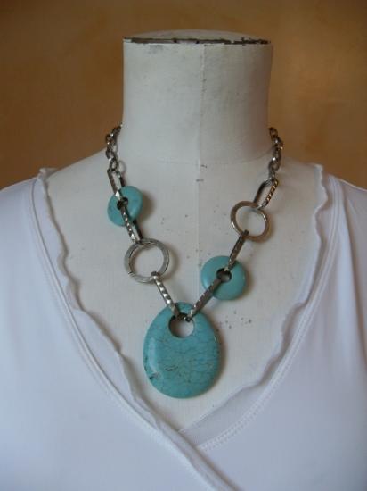 Collier métal et turquoise.