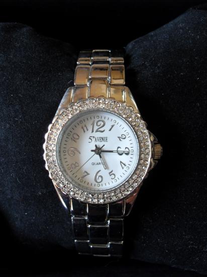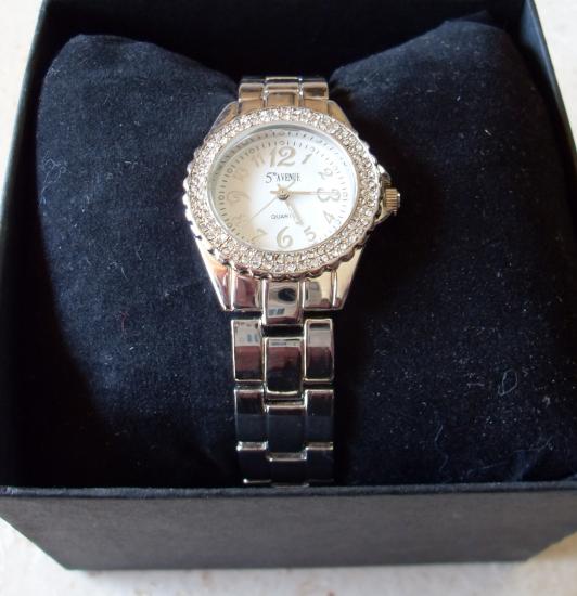 Montre femme ronde, métal et strass.