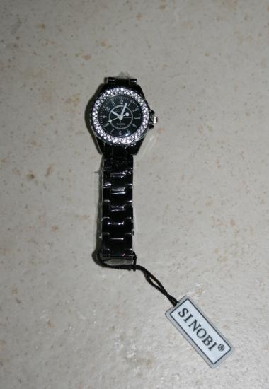 Montre ronde Sinobi, métal et strass.