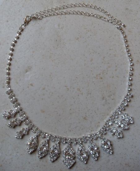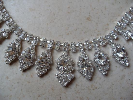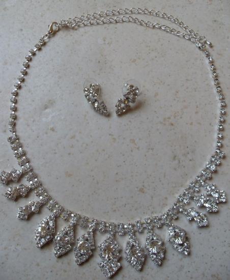 Somptueuse parure (collier + boucles d'oreilles) sertie de strass d'Autriche. Des strass en verre de grande qualité aux reflets éclatants.