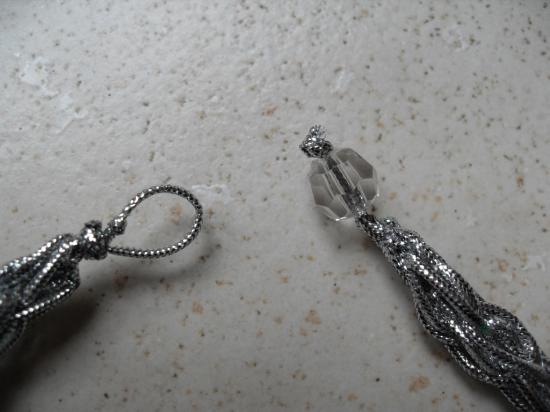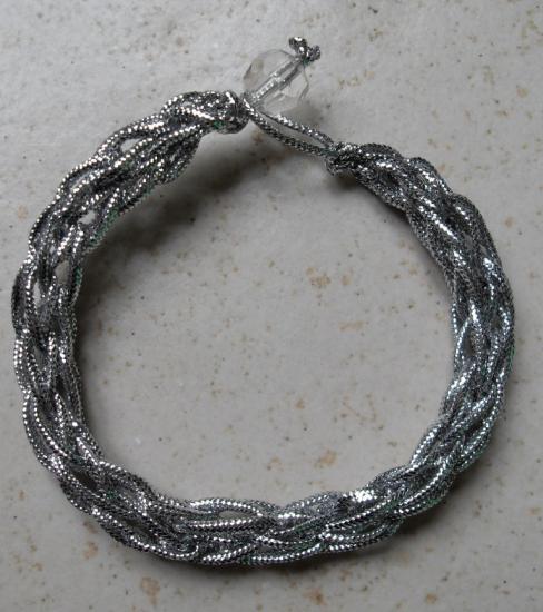 Parure tresse argentée en fil ruban métallique argenté avec fermoir perle facettes.