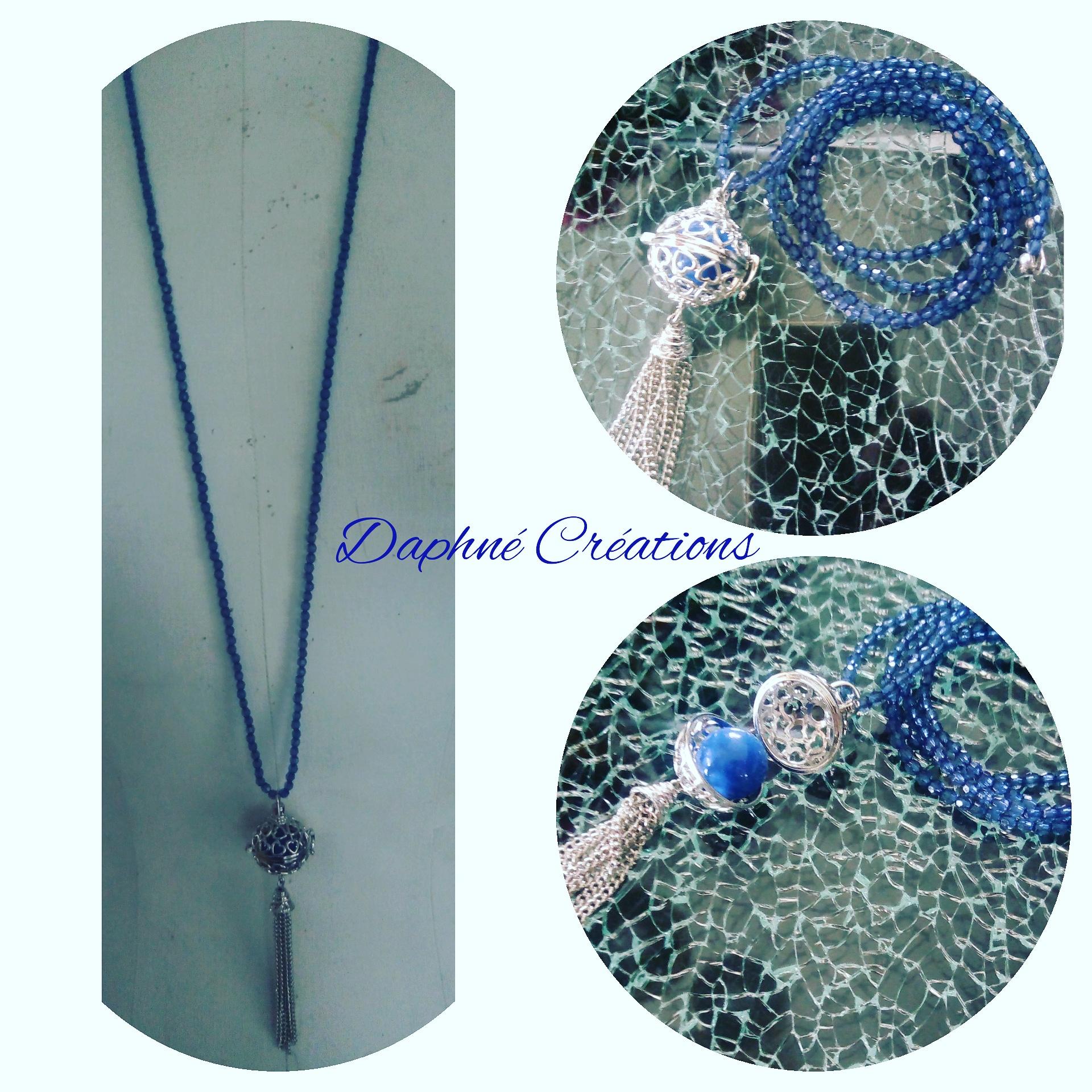 creation grossesse bijou bébé musical boule bola de grossesse bleu perles Sautoir