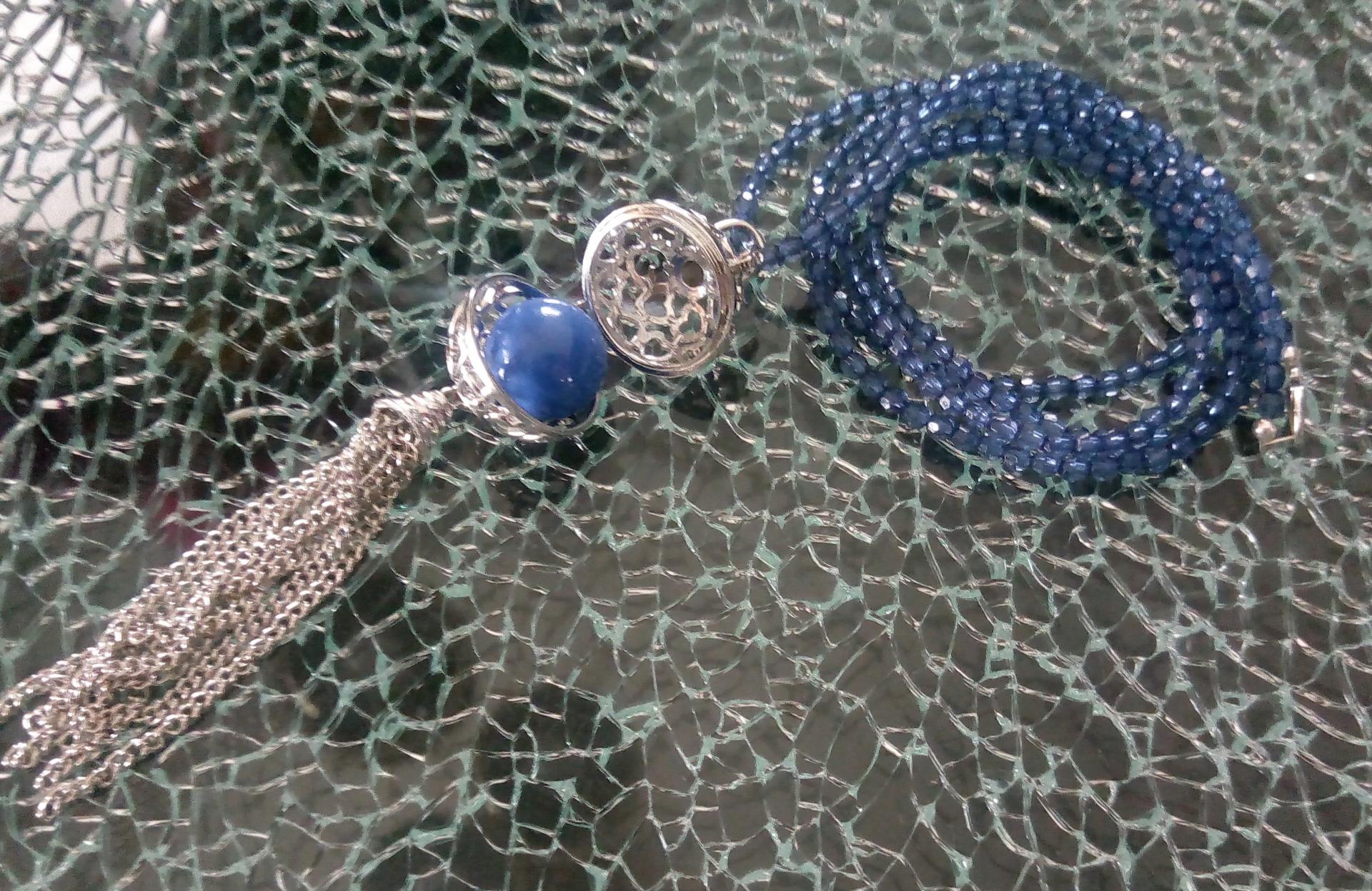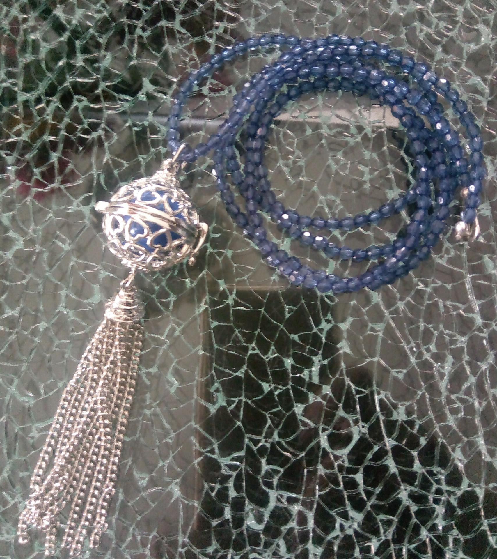 Sautoir de perles bleues et son bola de grossesse