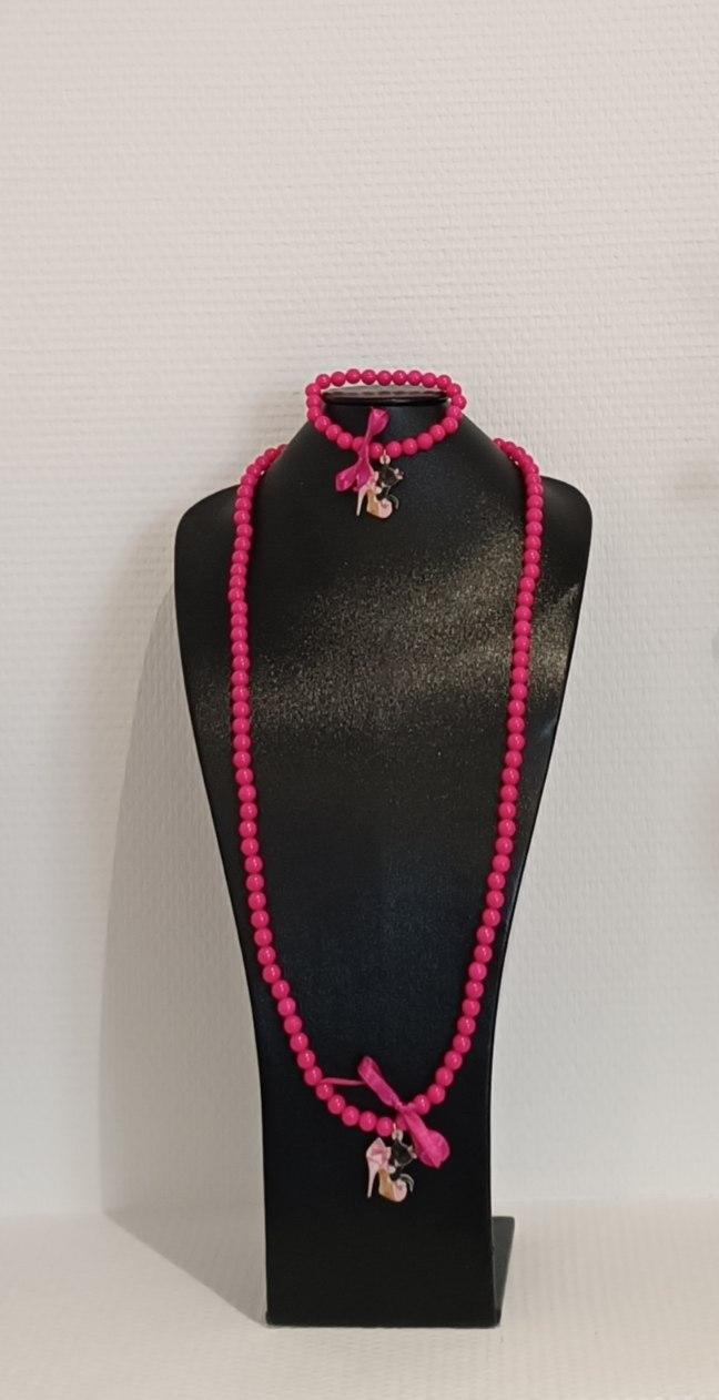 Bracelet en perles rose fushia et son escarpin et chaton