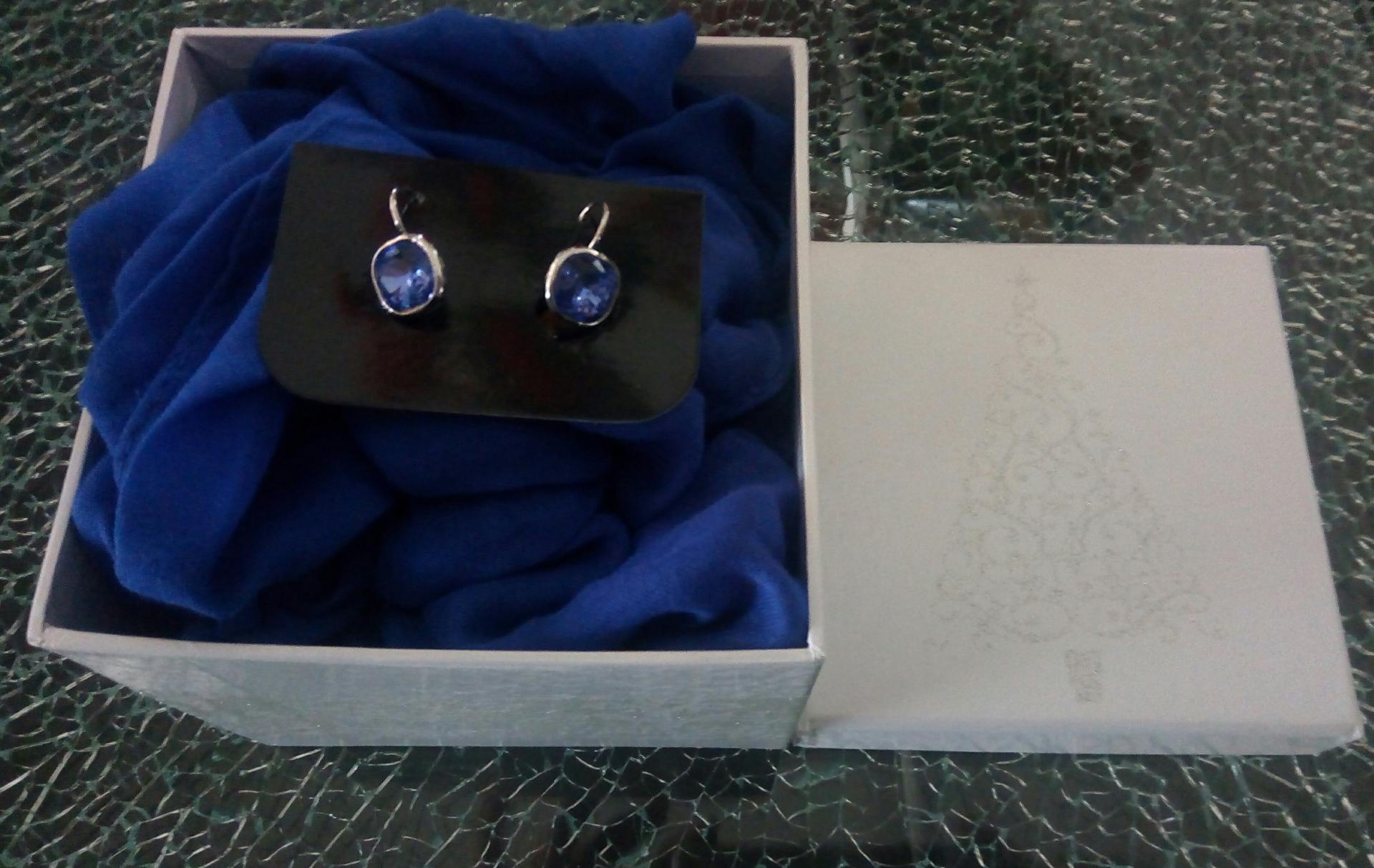 Coffret cadeaux, foulard et boucles d'oreilles strass bleu.