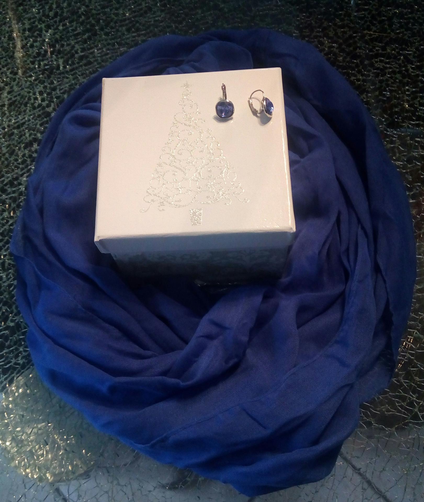 Boîte strass bleu boucles d'oreilles bleu Col snood Foulard Coffret cadeaux