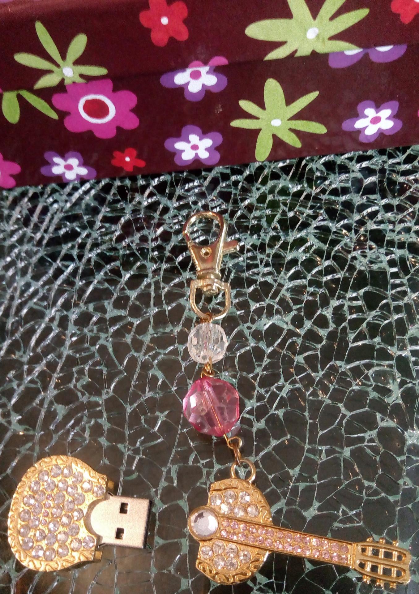 Guitare clé USB, 4 gb pour stocker vos images, documents, films et musique. Possibilité de l'accrocher en porte-clés ou en bijou de sac.Création artisanale en série limitée.
