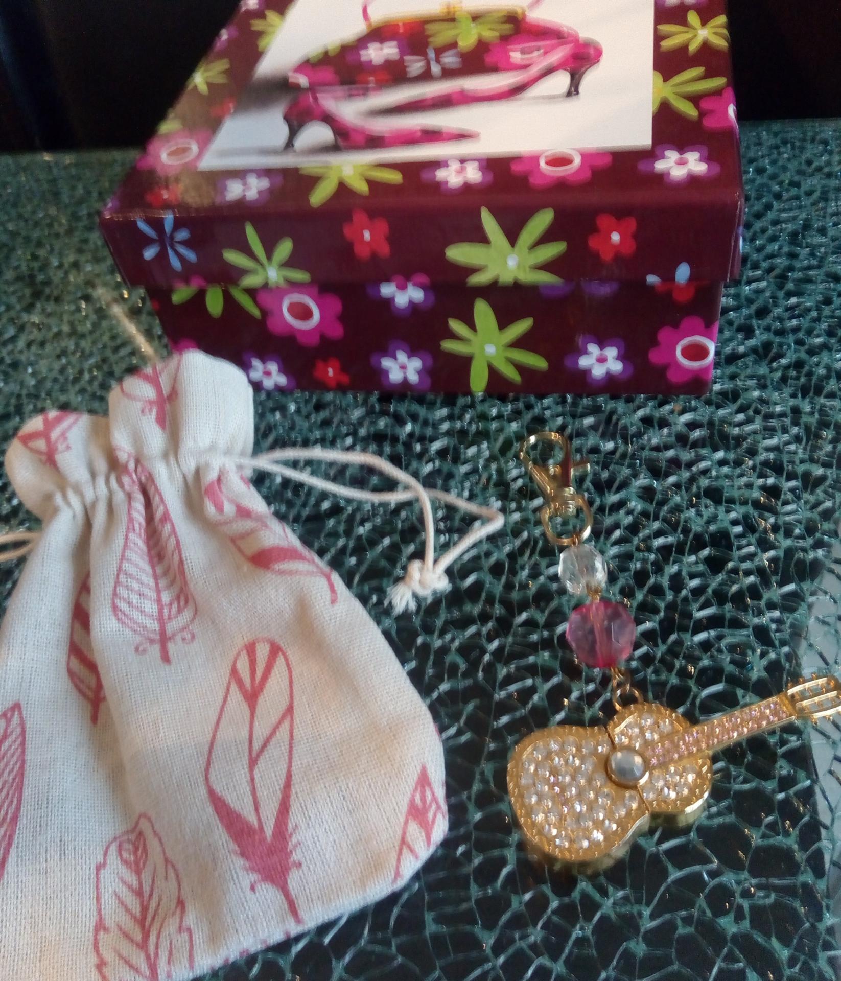 Coffret cadeaux snood Bijou de sac porte-clés Foulard clé-usb marron guitare Rose strass