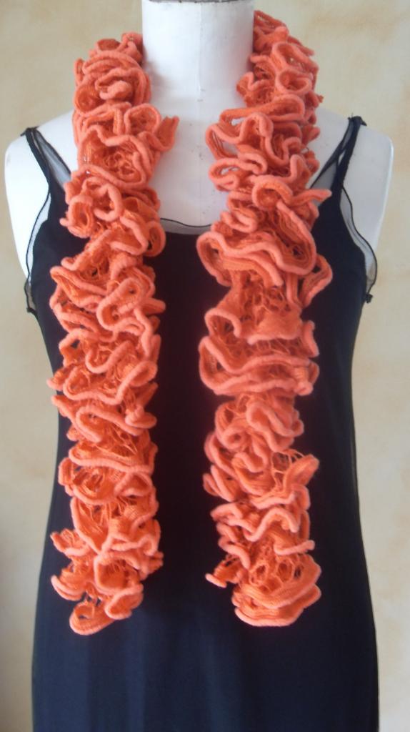 Echarpe frou-frou orange à volant, laine ruban.