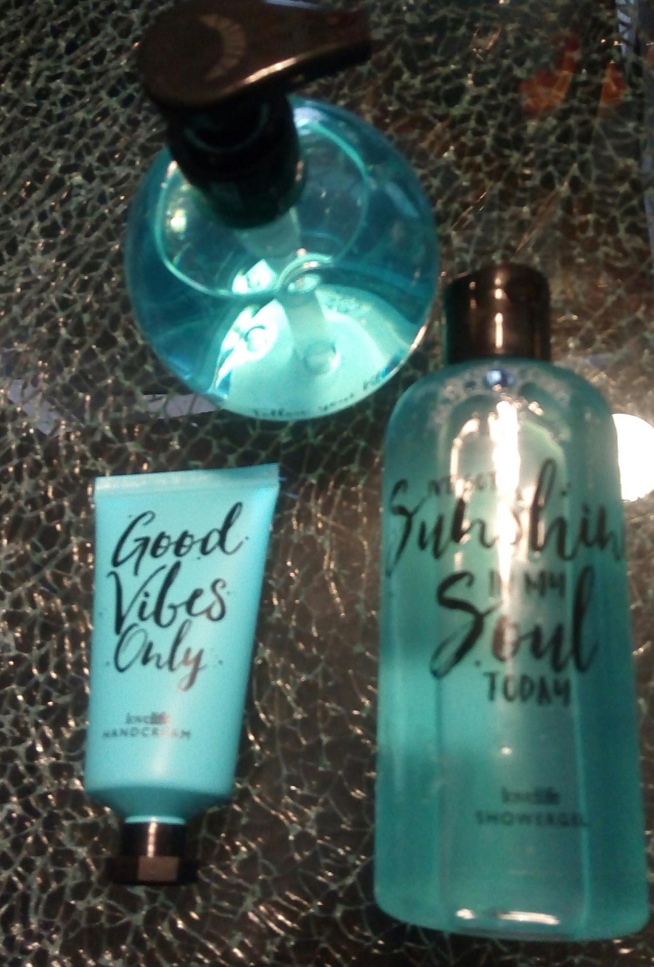 de produits cosmétiques (crème pour les mains, gel douche et gel nettoyant main),