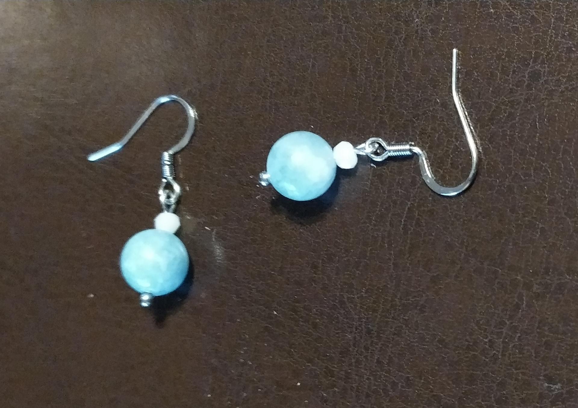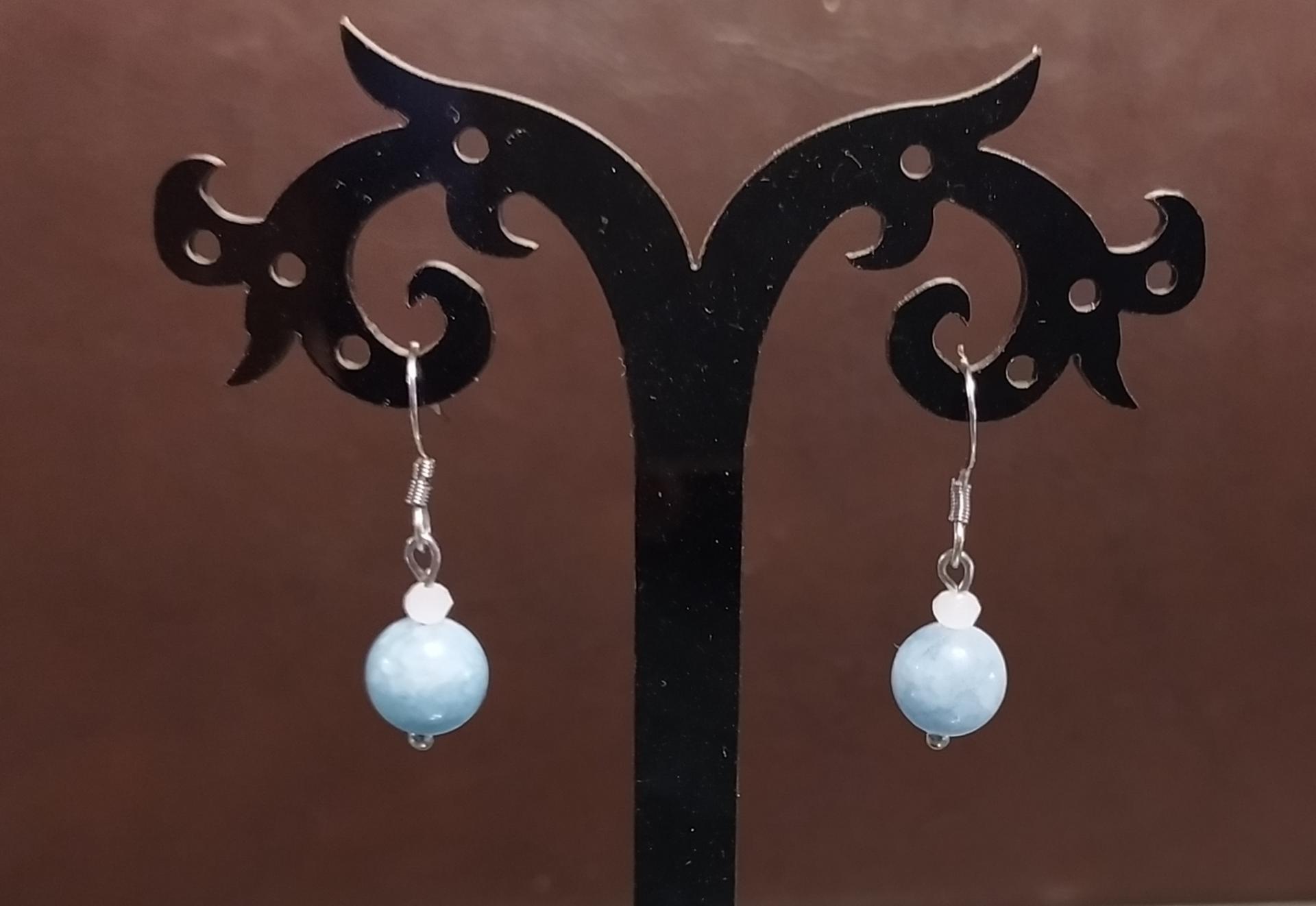 Boucles d'oreilles acier inoxydable et agates blanches et pierres naturelles.