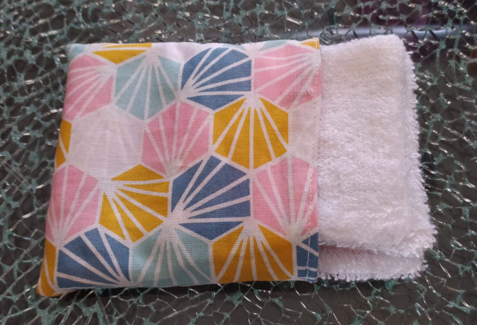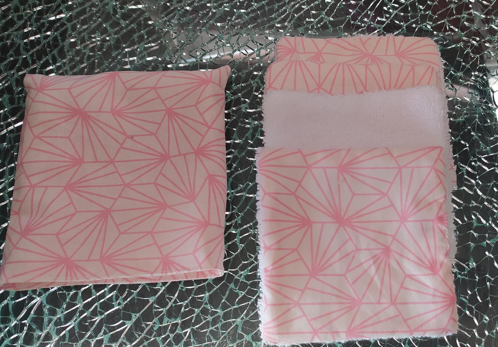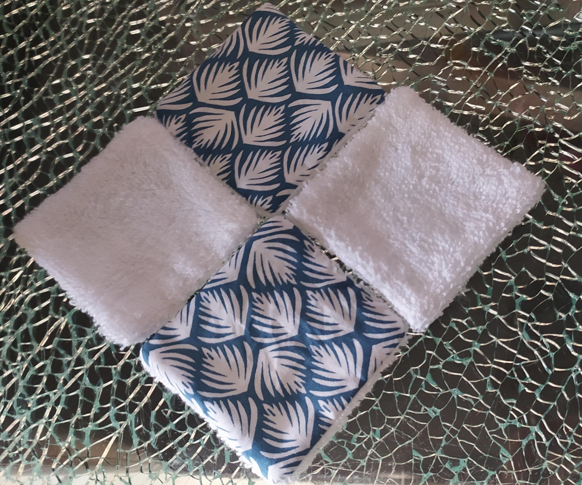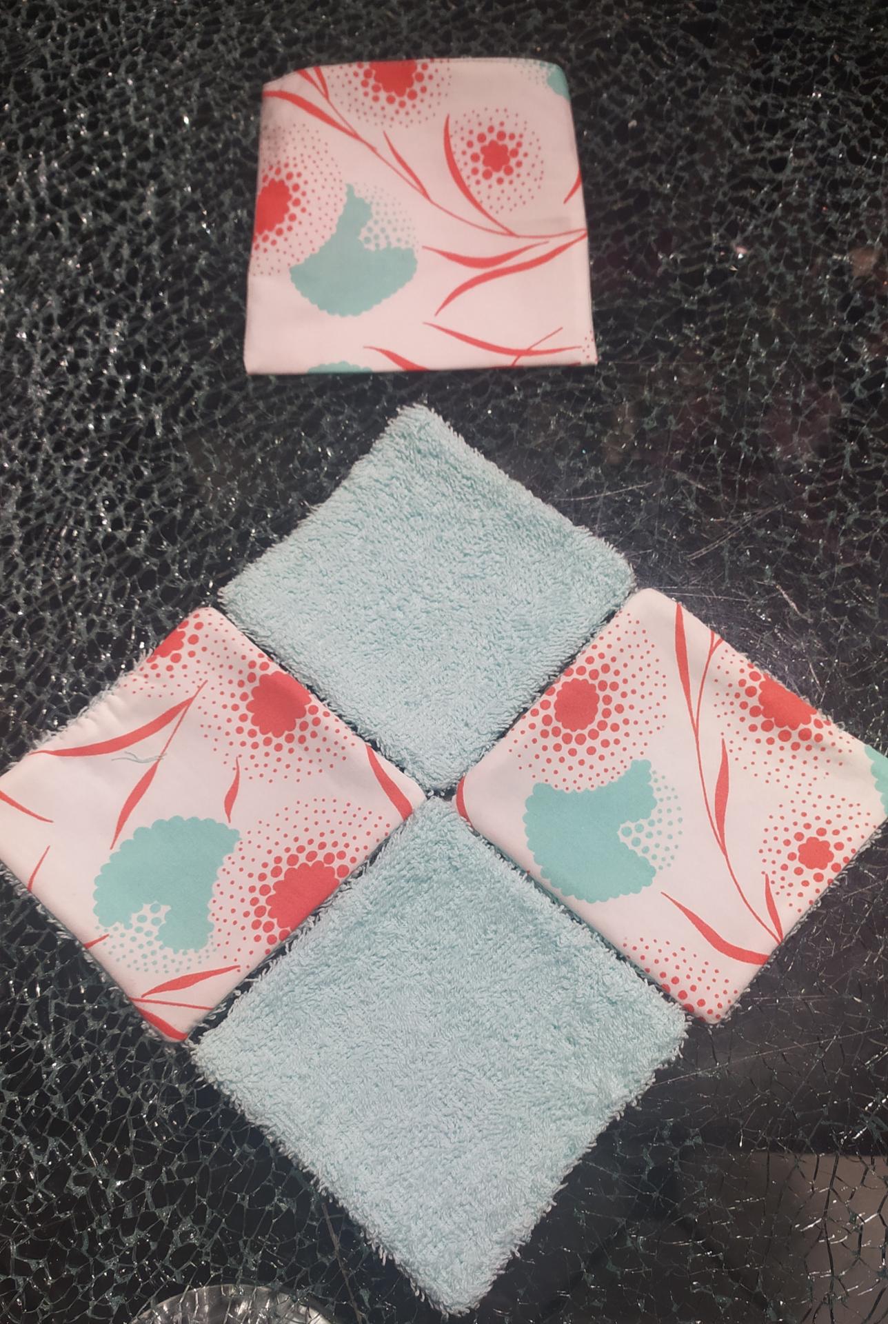 Petites lingettes démaquillantes, coton imprimé oeko-tex et éponge coton et bambou oeko-tex certifié.