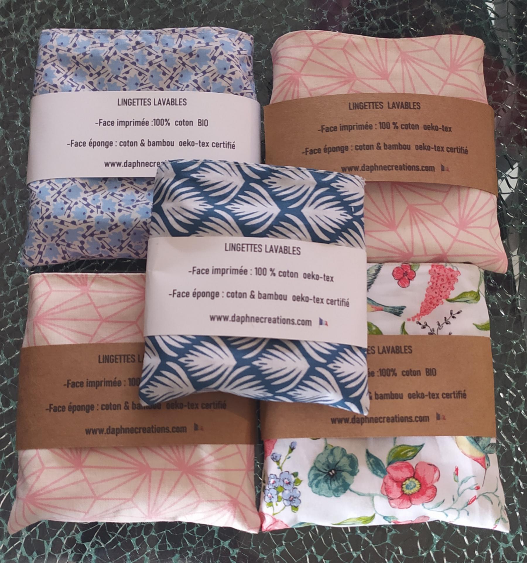 Daphné créations création artisanale oeko-tex certifié bambou coton eponge oeko-tex coton imprimé démaquillantes Lingettes