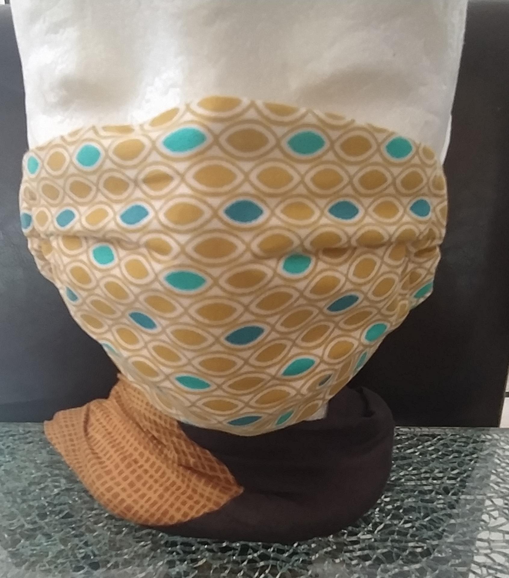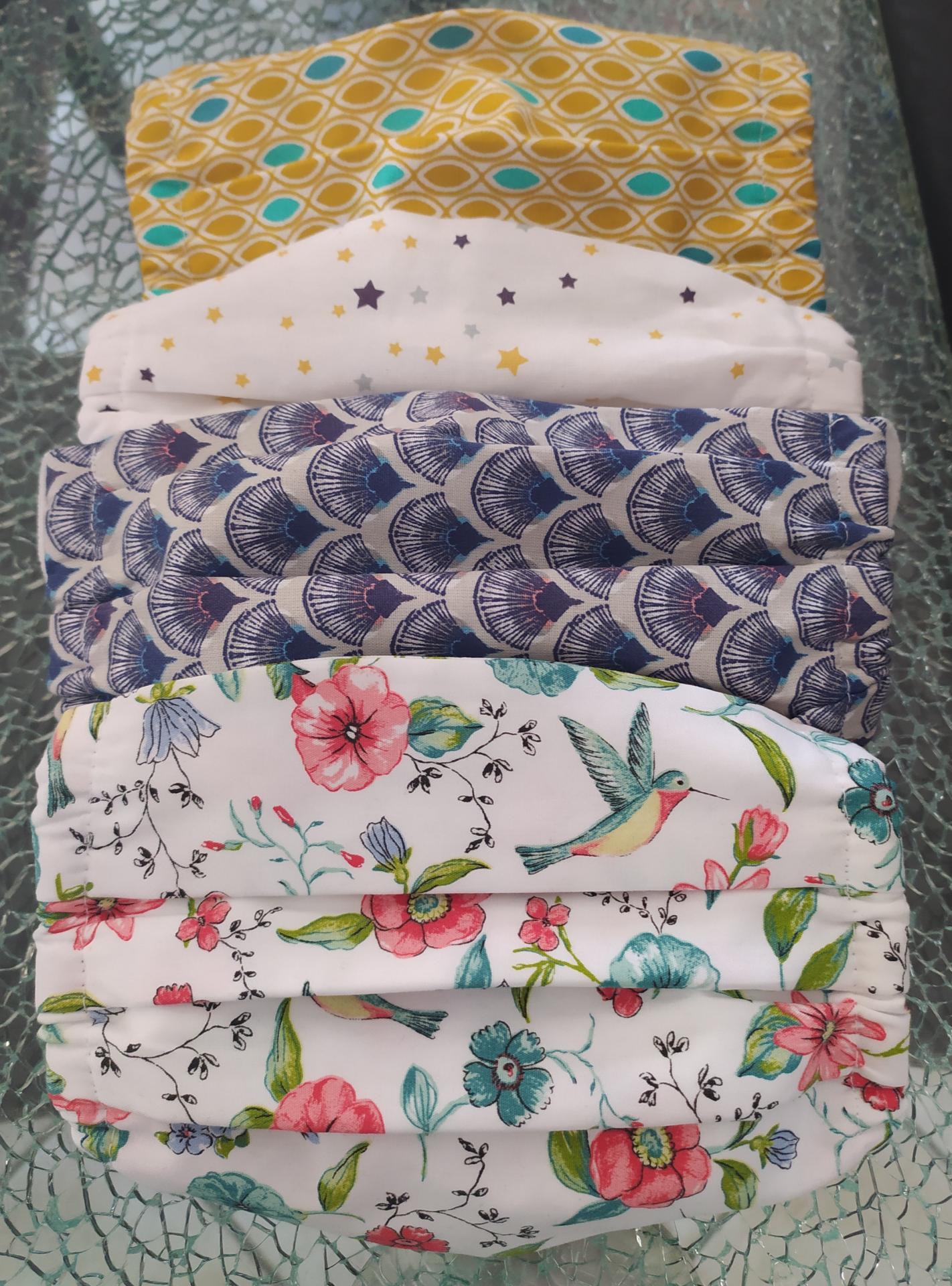 2 couches tissu coton Masque tissu forme Chu imprimés Daphné créations Femme couleurs élastiqué à plis création artisanale made in France