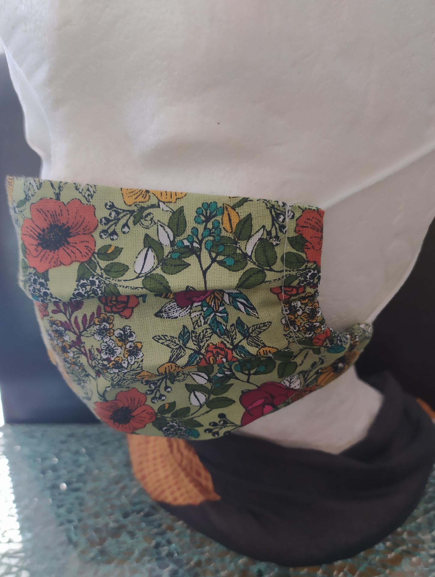 Masque tissu à plis, 2 couches tissu coton et 1 couche filtre non tissé, création artisanale fabriqué en France.