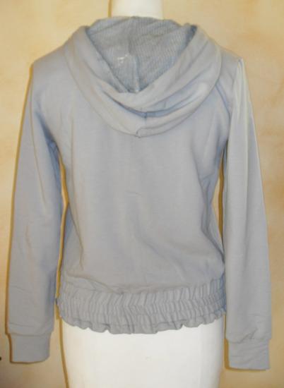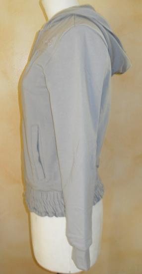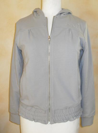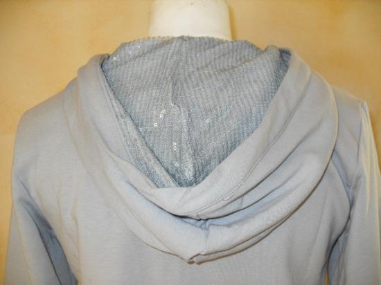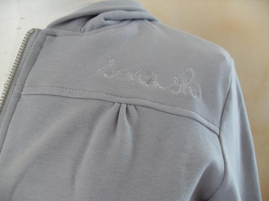 Gilet gris zippé, manches longues, bas smoké. Smash brodé sur le devant en fil argent.