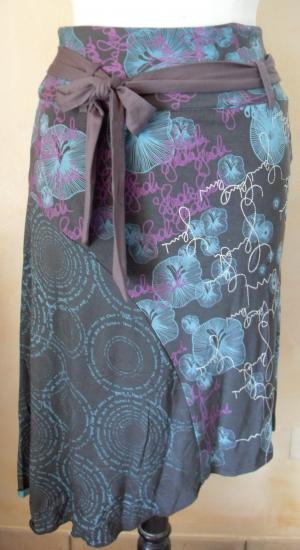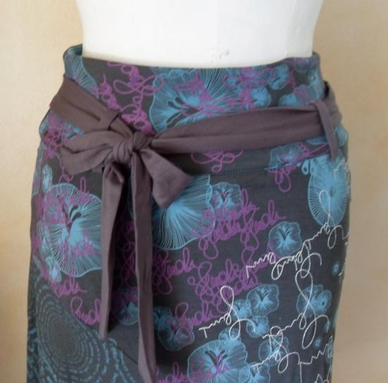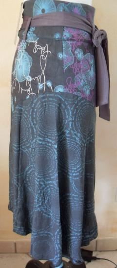 Jupe asymétrique grise et imprimée.
