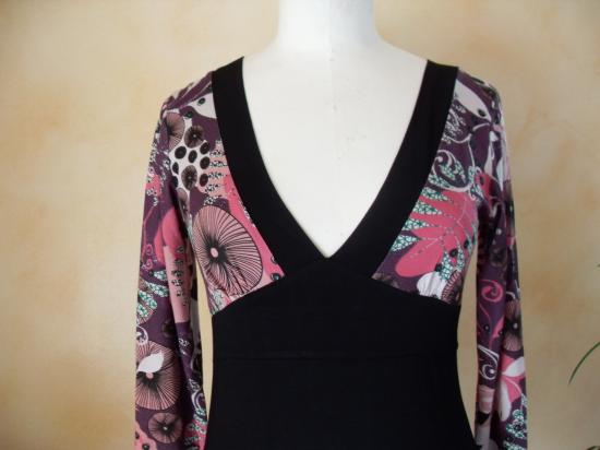 décolleté V sur le devant et decolleté goutte dans le dos, bas fintion boule.