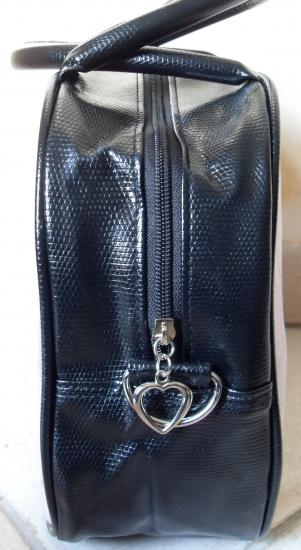 Sac à main avec 2 faces en tissu dessiné. 2 anses imitation cuir noir.Intérieur doublé avec 3 poches de rangement. Fermeture éclair