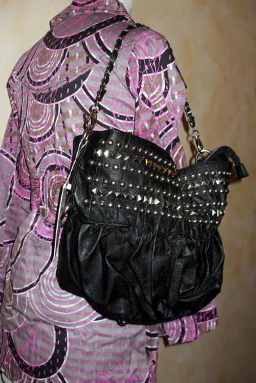 Sac à main noir décoré de clous en métal argenté.