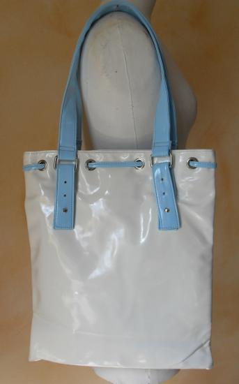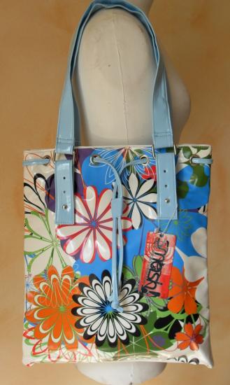 Dimensions: 40 cm de hauteur et 34 cm de largeur environ. 2 laniéres bleues de 60 cm chacune.