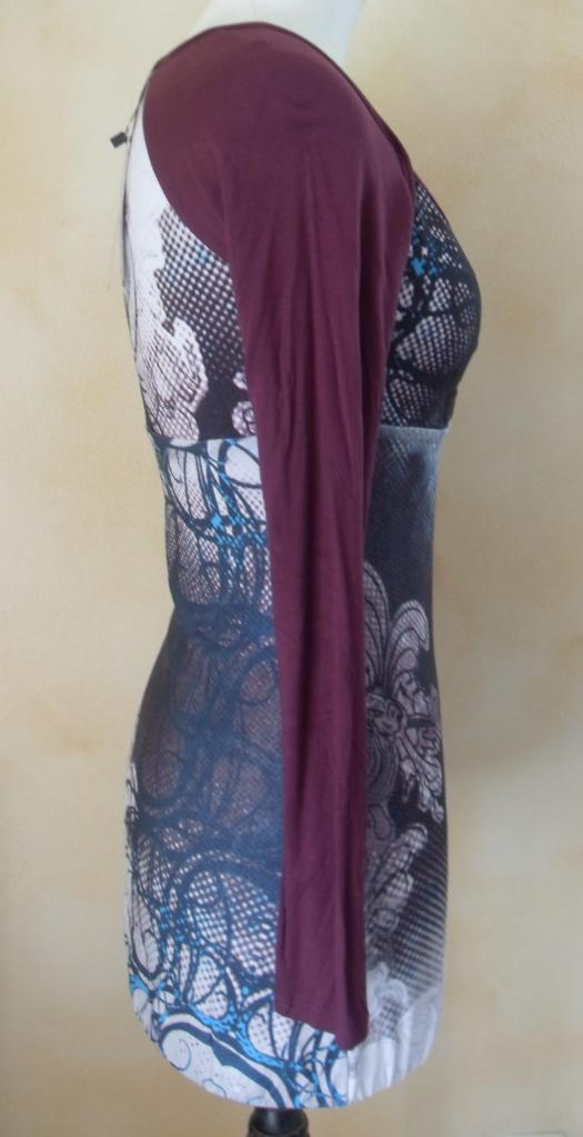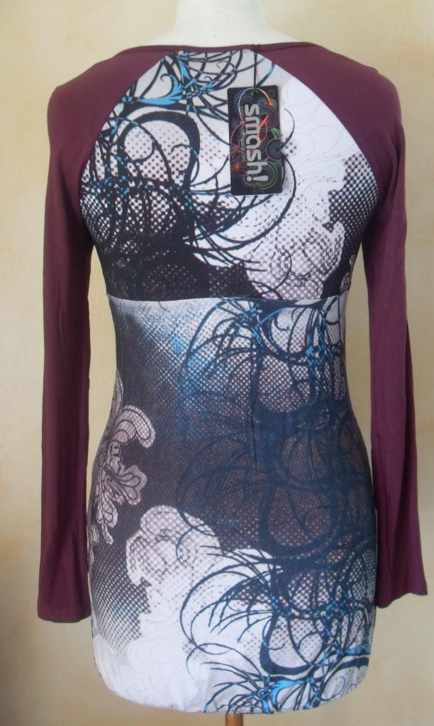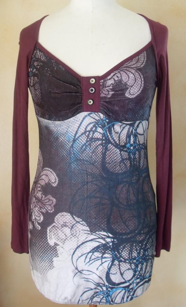 tunique LAUREN Smash imprimée prune manche longue décolleté bouton taille L
