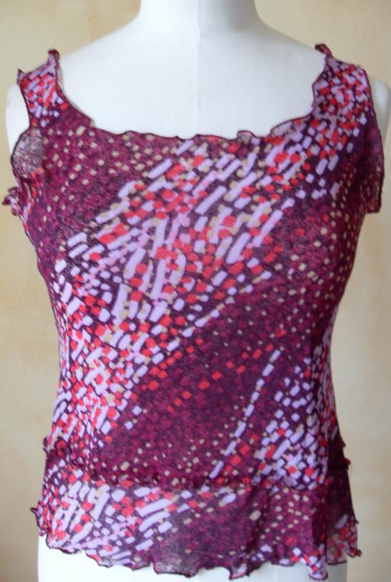 Débardeur voile imprimé rose-violet, création artisanale