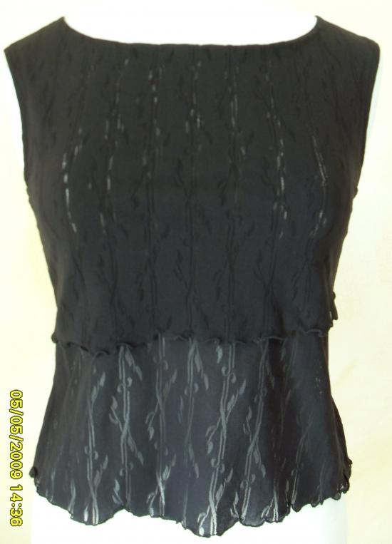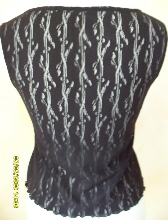 Débardeur noir en tissu elasthanne avec motifs ajourés. Devant 2 épaisseurs superposées.