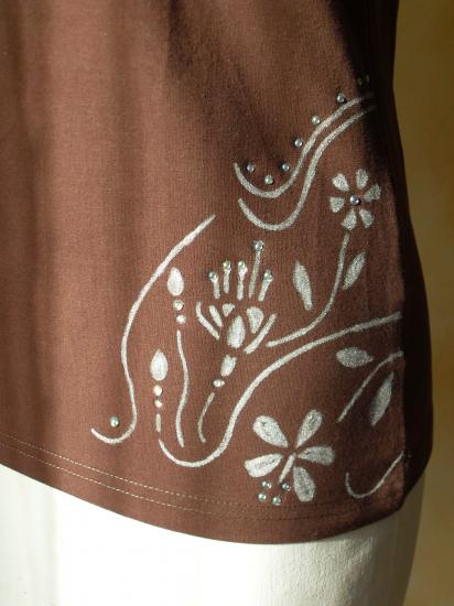strass Tee-shirt marron fleurs création unique Daphné créations peint main