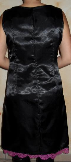 Doublure satinée noire avec finition dentelle rose qui dépasse legerement sous la robe.