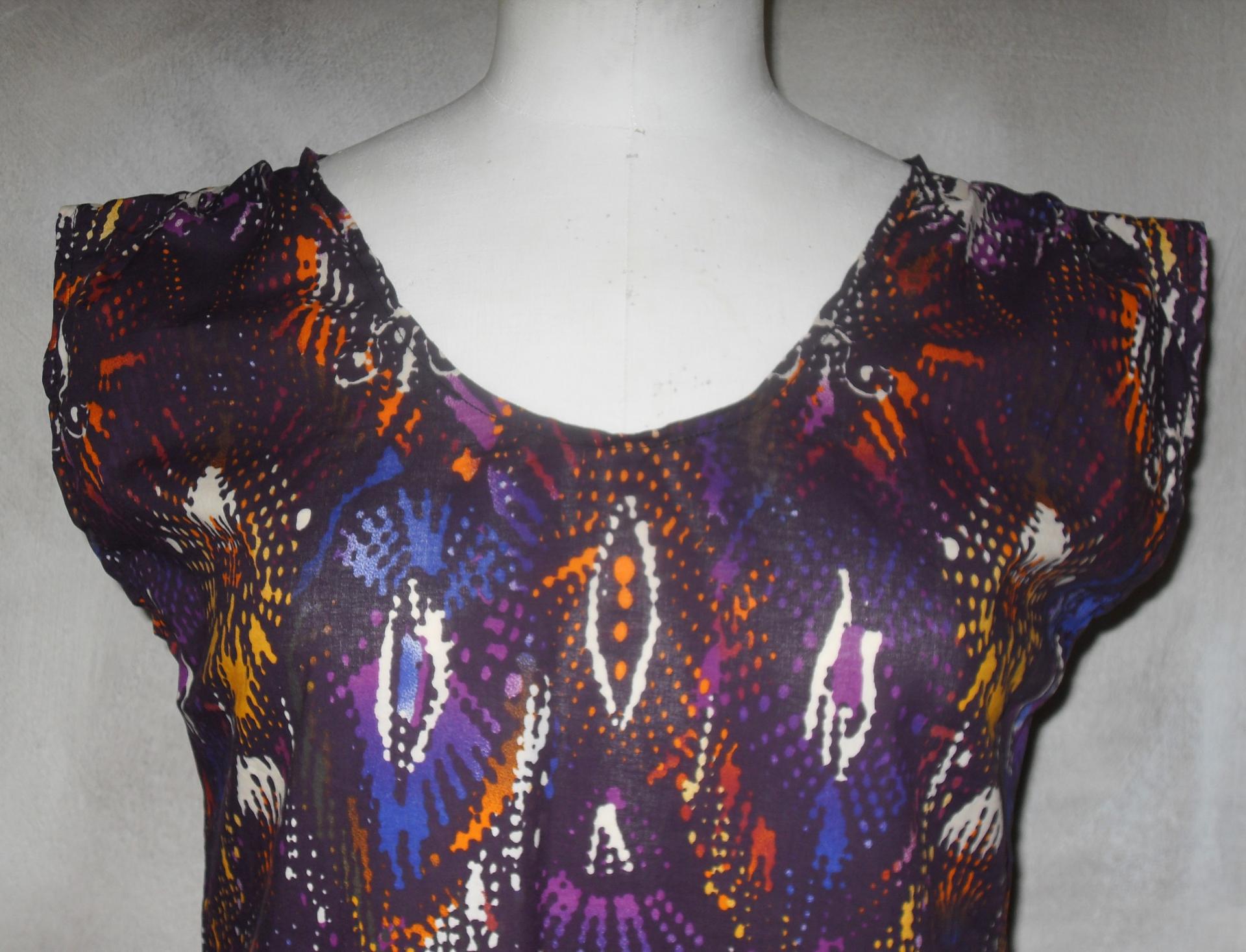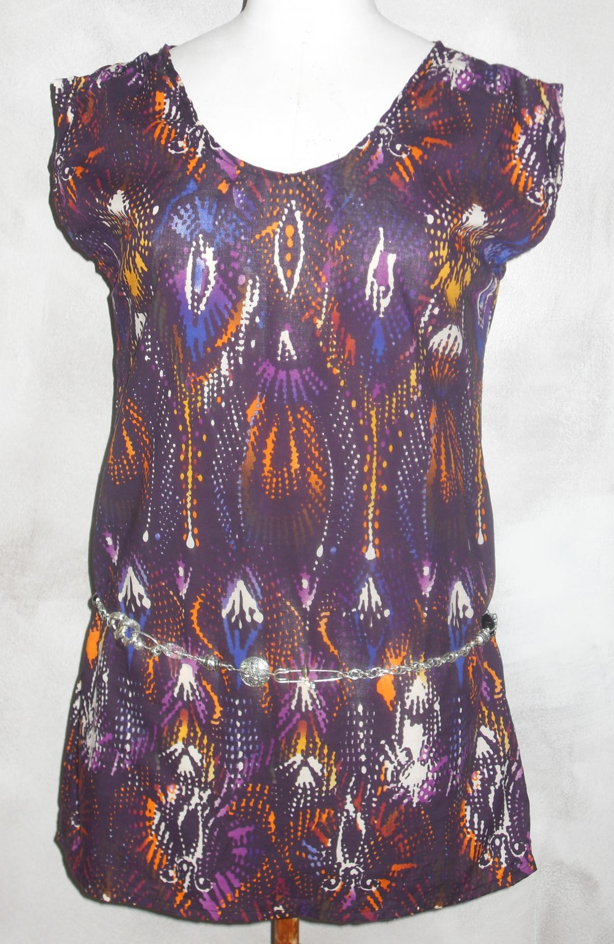Robe tunique violet orange made in France création unique taille unique imprimée manches courtes col rond